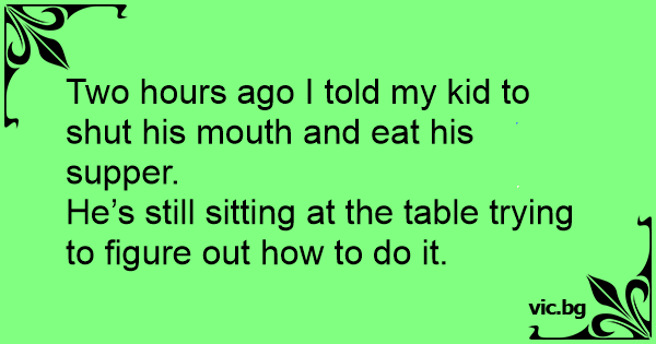 Two hours ago I told my kid to shut his mouth and eat his supper.