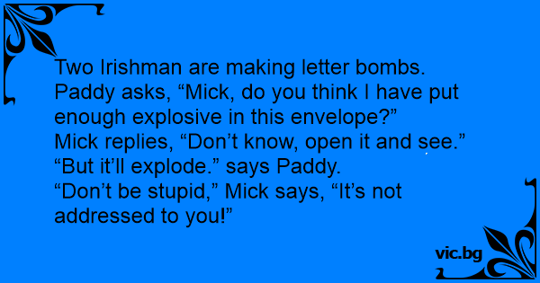 Paddy asks, “Мiск, do you think I have put enough explosive in this envelope?”