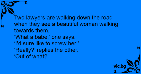 Two lawyers are walking down the road when they see a beautiful woman walking towards them.