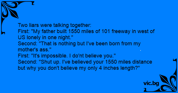 Second: "Shut up. I've believed your 1550 miles distance but why you don't believe my only 4 inches length?"