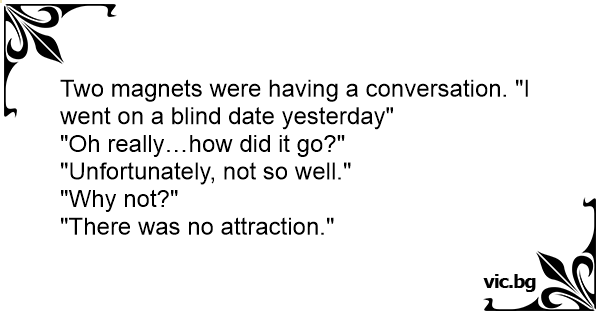 Two magnets were having a conversation. "I went on a blind date yesterday"