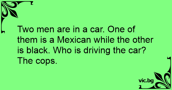 Two men are in a car. One of them is a Mexican while the other is black. Who is driving the car?