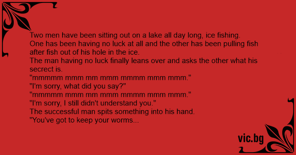 The man having no luck finally leans over and asks the other what his secrect is.