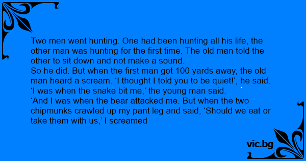 Two men went hunting. One had been hunting all his life, the other man was hunting for the first time. The old man told the other to sit down and not make a sound.