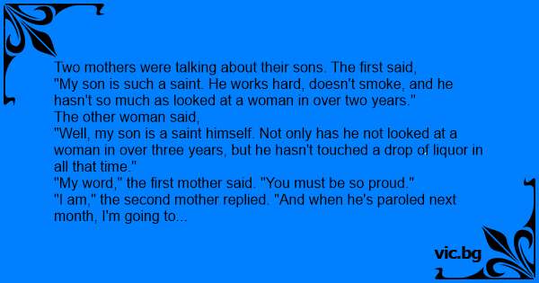 "I am," the second mother replied. "And when he's paroled next month, I'm going to throw him a big party."