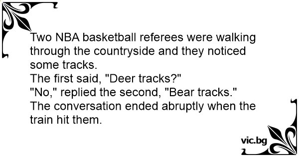 Two NBA basketball referees were walking through the countryside and they noticed some tracks.