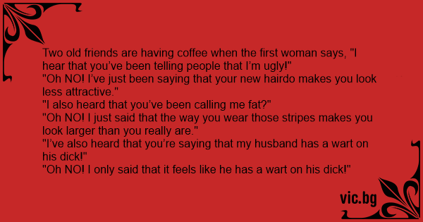 Two old friends are having coffee when the first woman says, "I hear that you’ve been telling people that I’m ugly!"