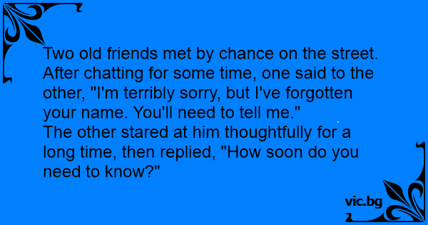 After chatting for some time, one said to the other, "I'm terribly sorry, but I've forgotten your name. You'll need to tell me."