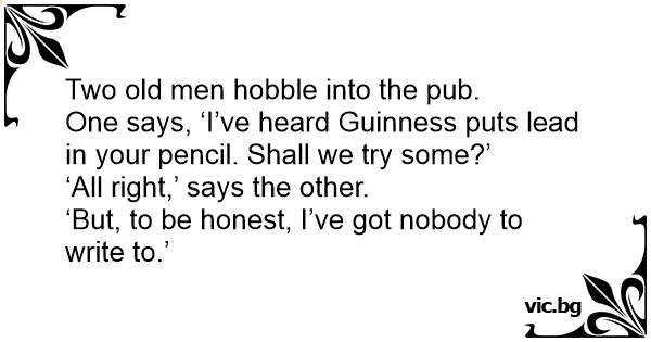 One says, ‘I’ve heard Guinness puts lead in your pencil. Shall we try some?’