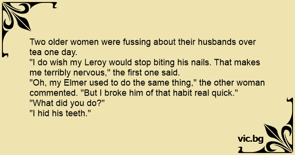 "I do wish my Leroy would stop biting his nails. That makes me terribly nervous," the first one said.