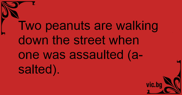 Two peanuts are walking down the street when one was assaulted (a-salted).