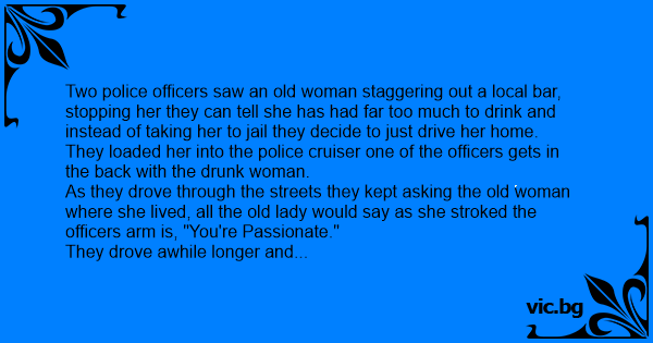 As they drove through the streets they kept asking the old woman where she lived, all the old lady would say as she stroked the officers arm is, "You're Passionate."