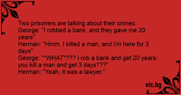 Two prisoners are talking about their crimes: