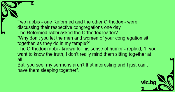 The Orthodox rabbi - known for his sense of humor - replied, “If you want to know the truth, I don’t really mind them sitting together at all.