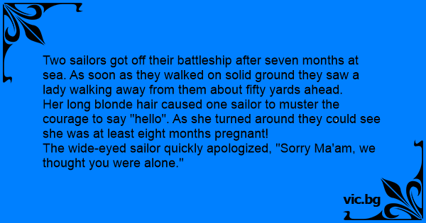 The wide-eyed sailor quickly apologized, "Sorry Ma'am, we thought you were alone."