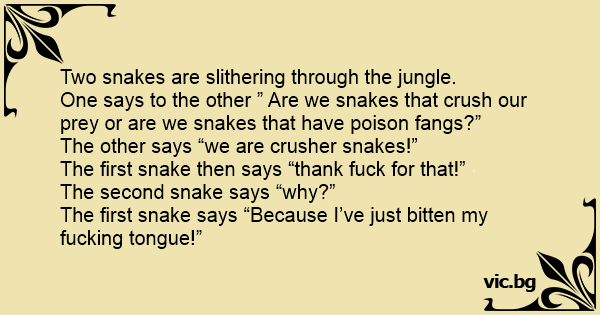 The first snake says “Because I’ve just bitten my fuскing tongue!”