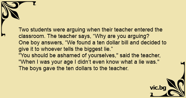 "You should be ashamed of yourselves," said the teacher, "When I was your age I didn’t even know what a lie was."