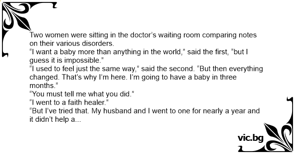 “I want a baby more than anything in the world,” said the first, “but I guess it is impossible.”