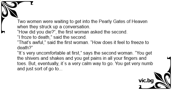 “That’s awful,” said the first woman. “How does it feel to freeze to death?”