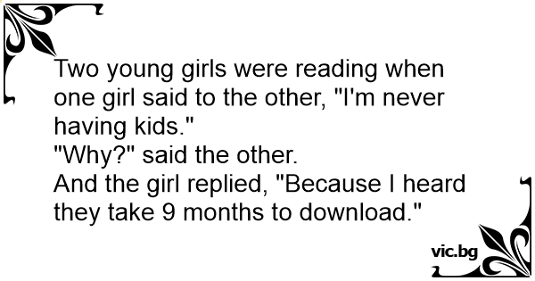 And the girl replied, "Because I heard they take 9 months to download."