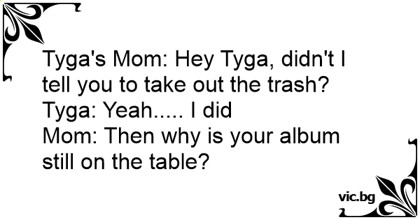 Tyga's Mom: Hey Tyga, didn't I tell you to take out the trash?