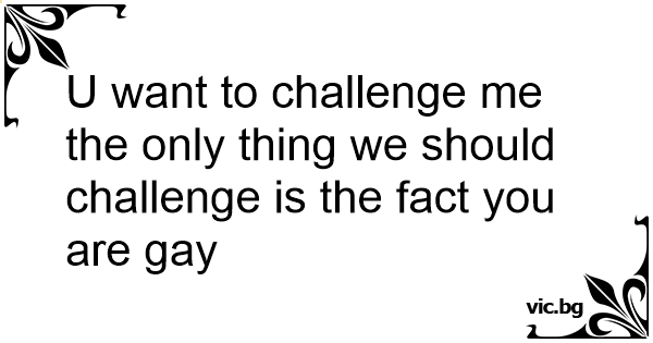 U want to challenge me the only thing we should challenge is the fact you are gay