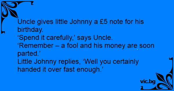 Little Johnny replies, ‘Well you certainly handed it over fast enough.’