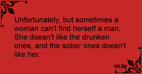 Unfortunately, but sometimes a woman can't find herself a man. She doesn't like the drunken ones, and the sober ones doesn't like her.