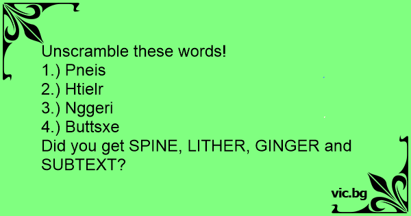 Did you get SPINE, LITHER, GINGЕR and SUBTEXT?
