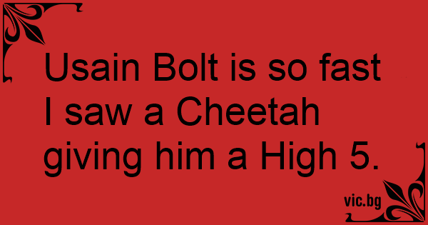 Usain Bolt is so fast I saw a Cheetah giving him a High 5.