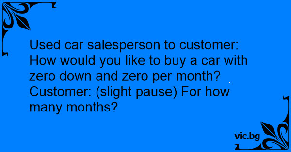 Used car salesperson to customer: How would you like to buy a car with zero down and zero per month?