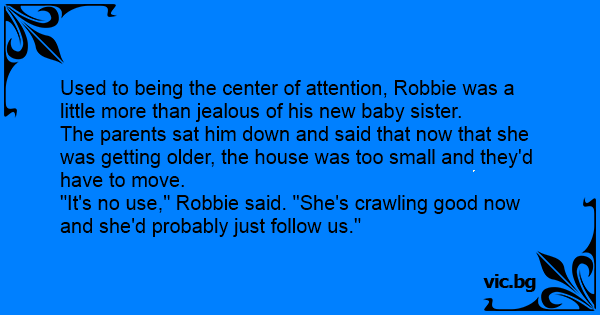 "It's no use," Robbie said. "She's crawling good now and she'd probably just follow us."