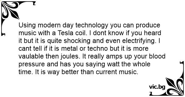 Using modern day technology you can produce music with a Tesla coil. I dont know if you heard it but it is quite shocking and even electrifying. I cant tell if it is metal or techno but it is more vaulable then joules. It really amps up your blood pressure and has you saying watt the whole time. It is way better than current music.