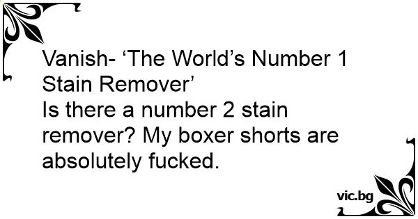 Vanish- ‘The World’s Number 1 Stain Remover’<br />Is there a number 2 stain remover? My boxer shorts are absolutely fuскеd.