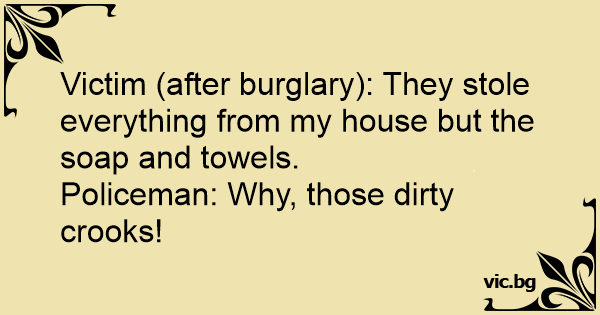 Victim (after burglary): They stole everything from my house but the soap and towels.