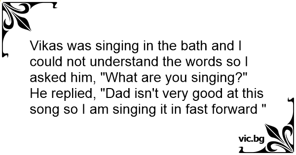 Vikas was singing in the bath and I could not understand the words so I asked him, "What are you singing?"
