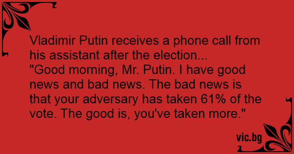 "Good morning, Mr. Putin. I have good news and bad news. The bad news is that your adversary has taken 61% of the vote. The good is, you've taken more."
