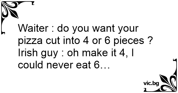 Waiter : do you want your pizza cut into 4 or 6 pieces ?