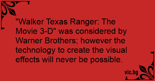 "Walker Texas Ranger: The Movie 3-D" was considered by Warner Brothers; however the technology to create the visual effects will never be possible.