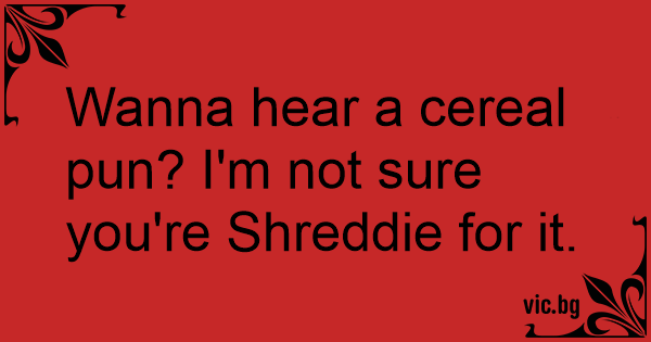Wanna hear a cereal pun? I'm not sure you're Shreddie for it.