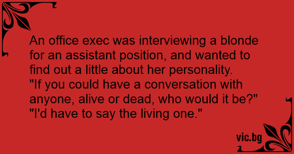 An office exec was interviewing a blonde for an assistant position, and wanted to find out a little about her personality.