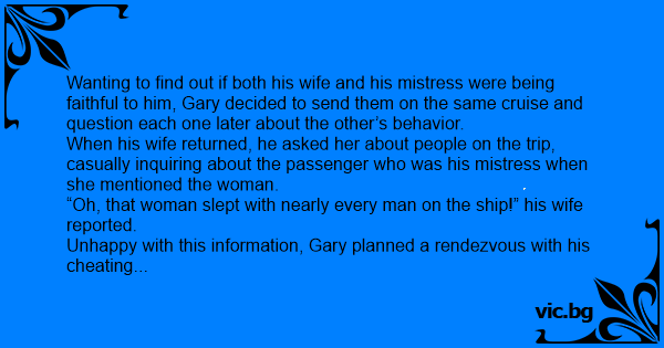 Wanting to find out if both his wife and his mistress were being faithful to him, Gary decided to send them on the same cruise and question each one later about the other’s behavior.