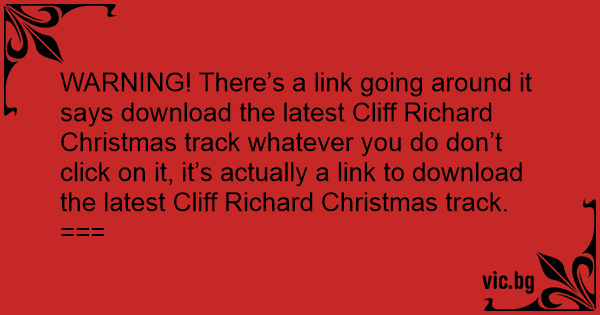 WARNING! There’s a link going around it says download the latest Cliff Richard Christmas track whatever you do don’t click on it, it’s actually a link to download the latest Cliff Richard Christmas track.