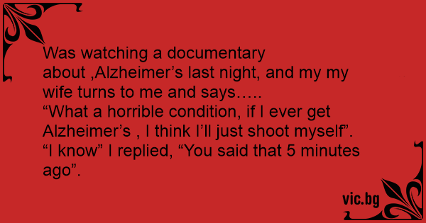 Was watching a documentary about ,Alzheimer’s last night, and my my wife turns to me and says…..