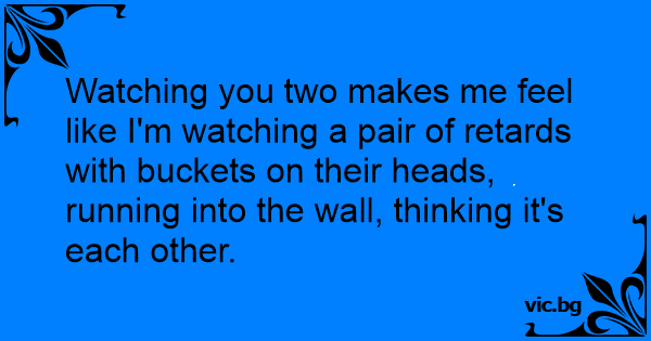 Watching you two makes me feel like I'm watching a pair of retards with buckets on their heads, running into the wall, thinking it's each other.