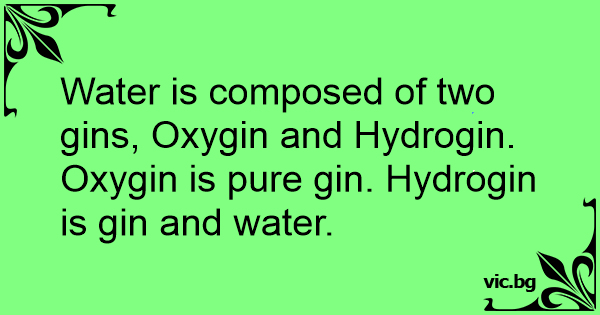 Water is composed of two gins, Oxygin and Hydrogin. Oxygin is pure gin. Hydrogin is gin and water.