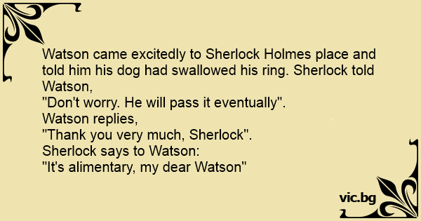 Watson came excitedly to Sherlock Holmes place and told him his dog had swallowed his ring. Sherlock told Watson,