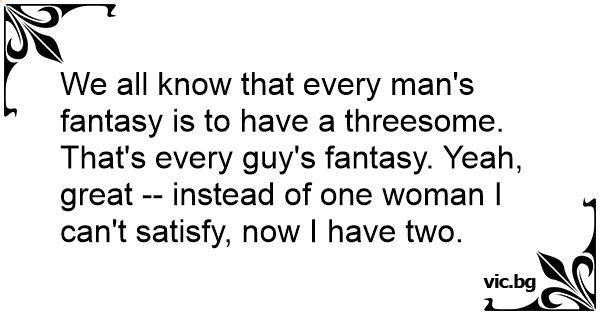 We all know that every man's fantasy is to have a тhrееsоме. That's every guy's fantasy. Yeah, great -- instead of one woman I can't satisfy, now I have two.