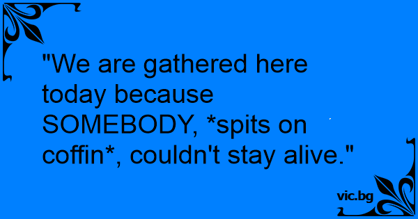 "We are gathered here today because SOMEBODY, *spits on coffin*, couldn't stay alive."