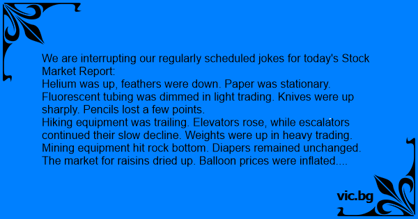 We are interrupting our regularly scheduled jokes for today's Stock Market Report: